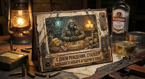 | EVG69, Евгений! Поздравляю тебя с Днём Рождения! В этот особенный день хочу пожелать тебе такой же стойкости и мужества, как у сталкеров, исследующих опасные зоны Зоны. Пусть каждый твой шаг будет продуманным и уверенным, а удача всегда будет на твоей стороне! Пусть в твоей жизни, как в игре Сталкер, встречаются только дружественные аномалии и безопасные маршруты! Желаю, чтобы твои мечты и цели были столь же амбициозными, как поиски артефактов в самых опасных уголках Зоны! Пусть каждый день приносит новые возможности, интересные встречи и неожиданные, но приятные сюрпризы! Будь всегда таким же решительным, смелым и целеустремлённым! Пусть твоя жизнь будет полна приключений, а рядом всегда будут надёжные друзья и близкие люди! С Днём Рождения!!!