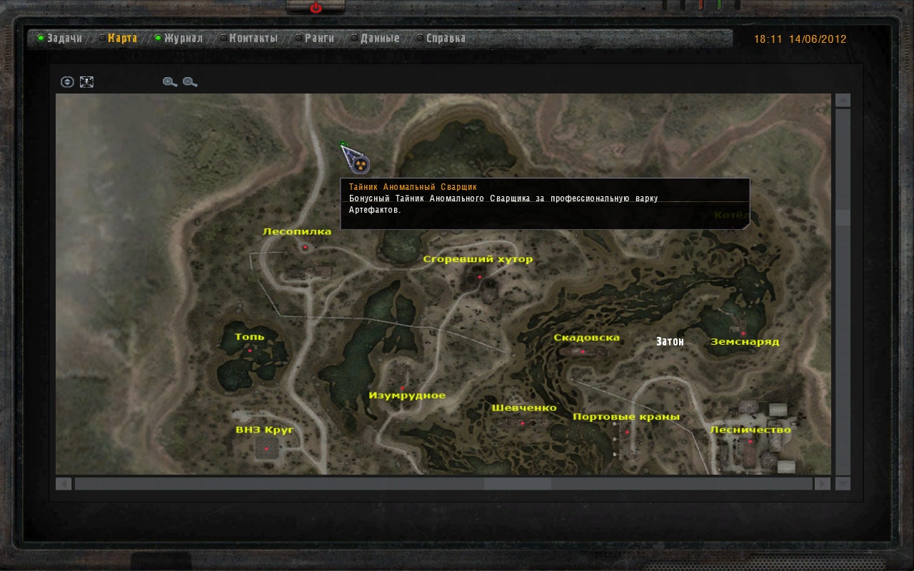"Тайник Волка с оружием, которое нужно вернуть владельцу, создаётся случайно на вершине одного из скальных образований вокруг разбившегося вертолёта в Ржавом лесу на Радаре." (с)