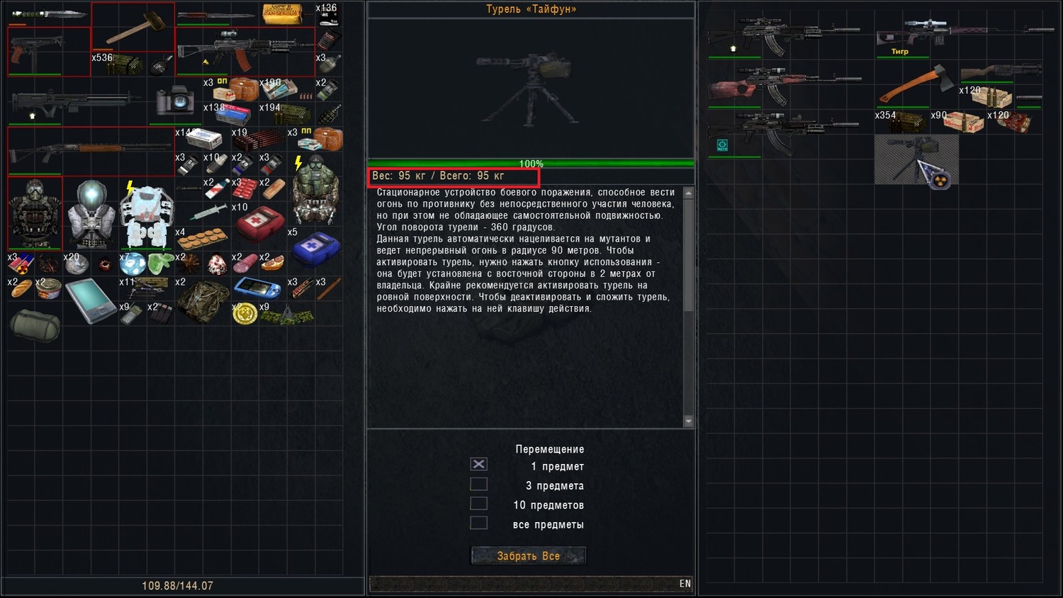 в Мод паке я читал описания и там было что турели сделали 25 кг но они у меня почему то 95 кг весят