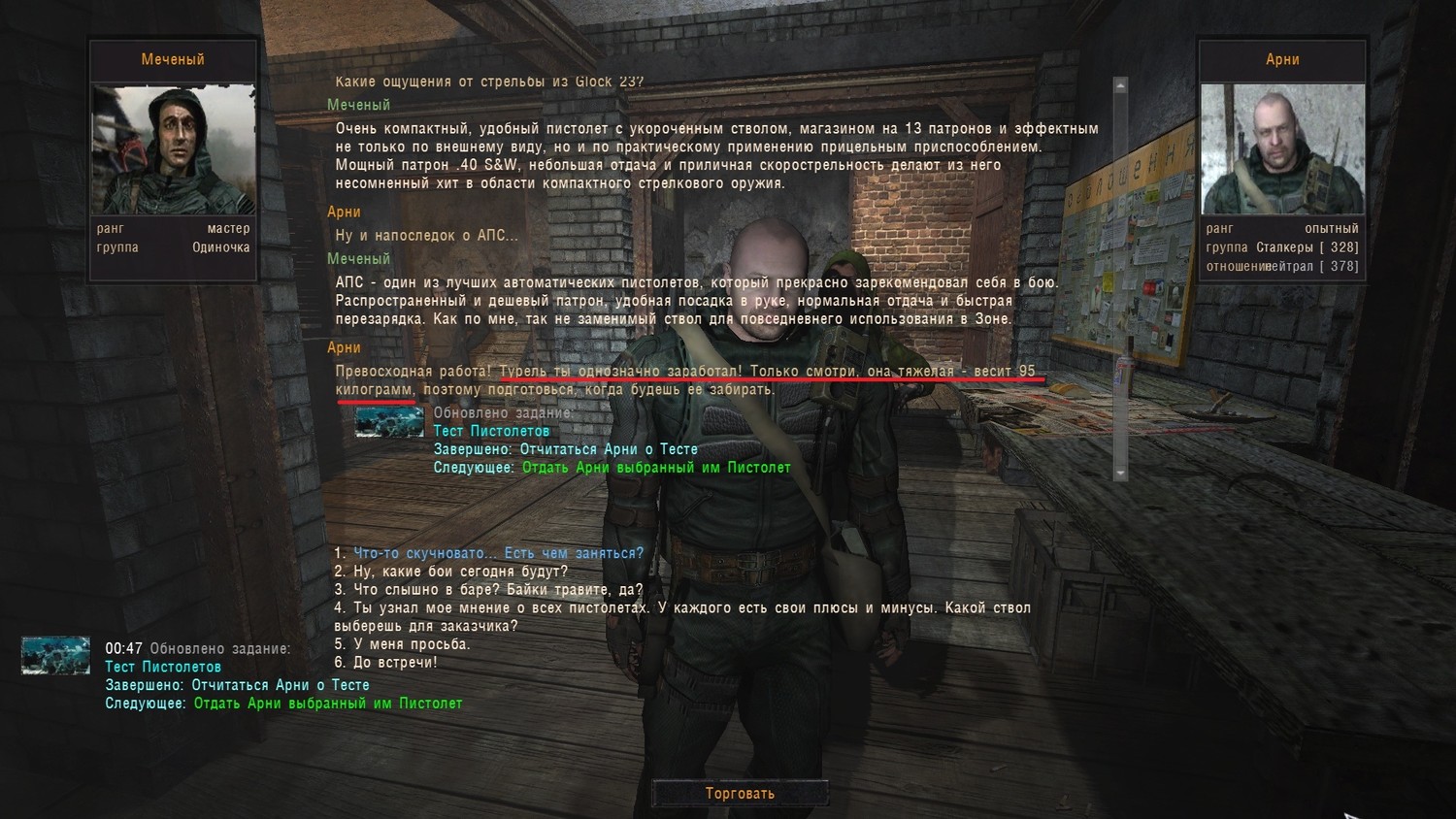- В Квесте Тест Пистолетов от Арни, в Диалог добавлено предупреждение о весе Турели 95 кг.