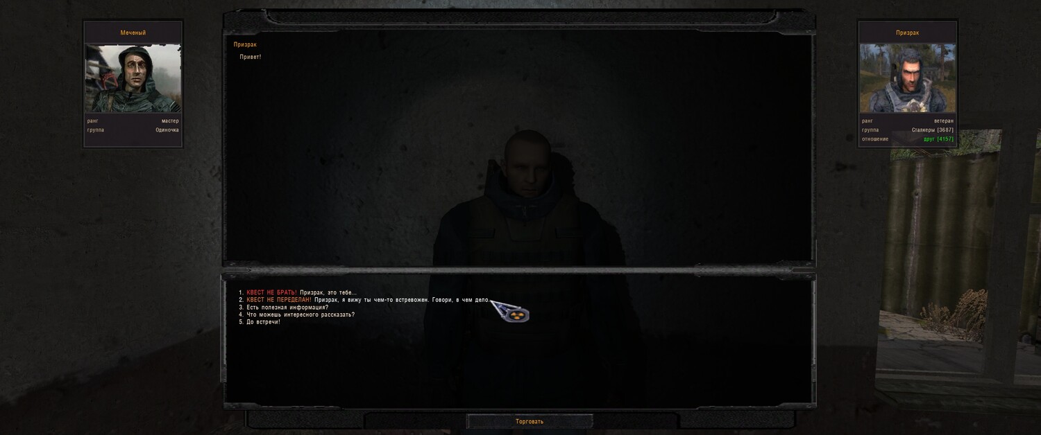 | Цитата арслав (  ) Привет. Как отдашь записку Призраку, будет квест на Бюрера. Нет. Диалоги с Призраком на отдачу записки Сыча и на раздевание Бюрера висят одновременно. Только диалог на записку под "красным запретом", а диалог на раздевание под "желтым не переделан". Если не хочешь ждать переделанного квеста на КПК Призрака, то смело бери его и после его сдачи на ДТ появится Сивый.