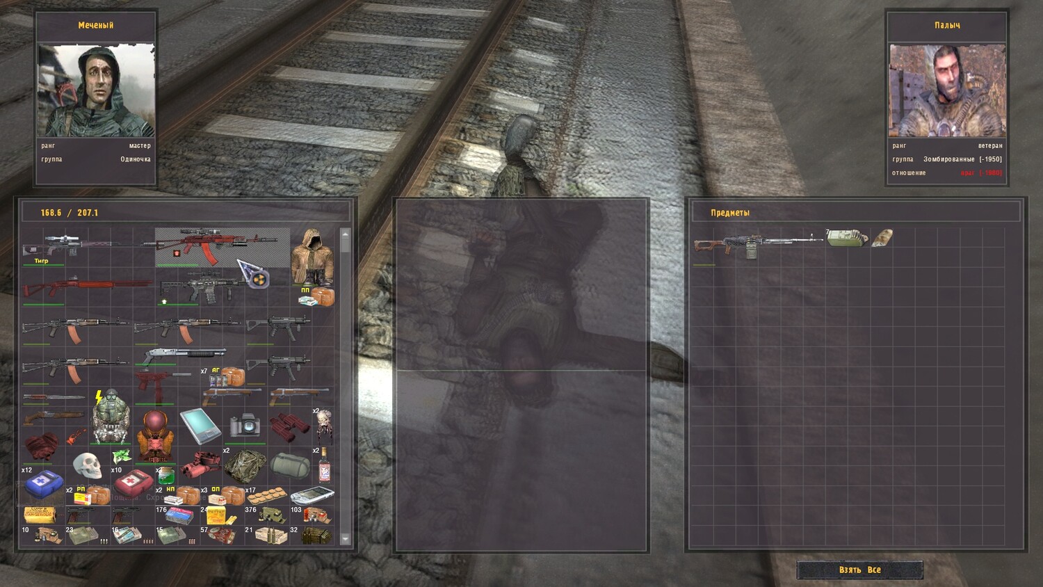 Но сегодня мне повезло 22й день игры зашел в ТЛ , получил достижение Свинопас))) и с той троицы Стронгов что под елками стоят снял 2 башки сразу!!!! Плюс пошел за тайником в тонель а там зомбированый Палыч со своим пулеметом, я его тогда не нашел когда контейнеры Александрычу на Болотах доставал, все обыскал три трупа с контейнерами Палыча нет. А тут вот он куда дошел