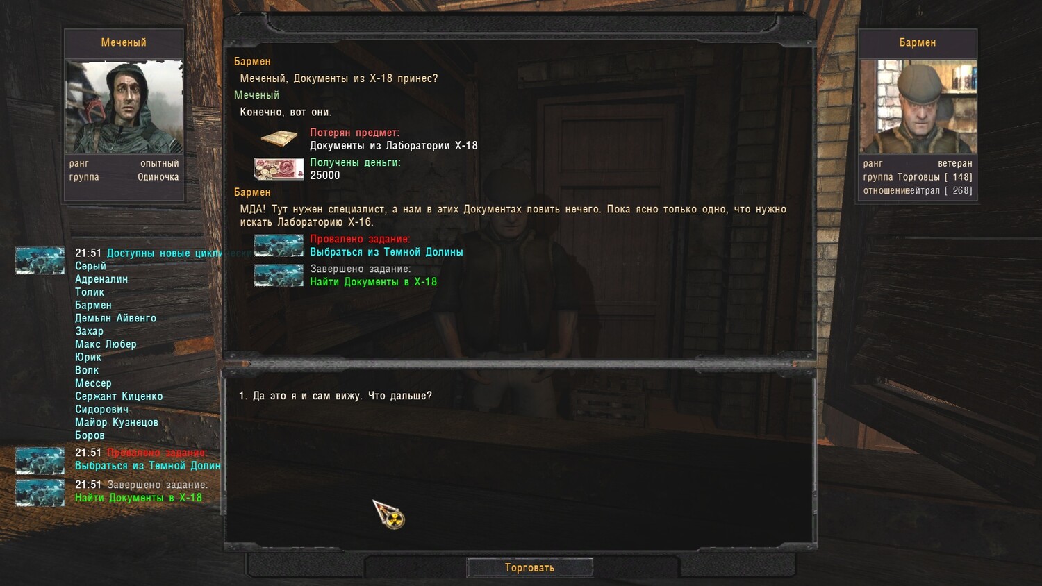 Главное, не переходи на Кордон! Тогда потеряешь много плюшек для игры! Сама всегда так делаю! Только документы не сдаю Бармену! Сходить хабар отнести и перевооружиться) Илья в своем видео подробно рассказывает об этом. «Если ты один раз попал в Зону Отчуждения, она не отпустит тебя уже никогда!»