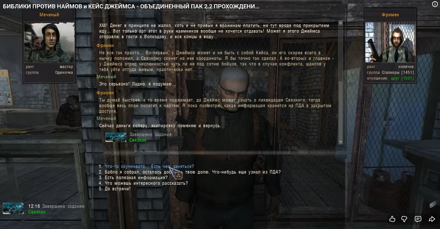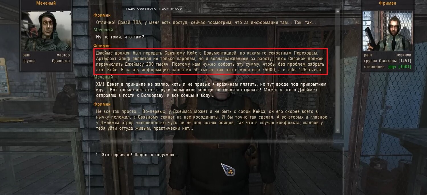 Название ПДА в скрине. Илья всегда говорил, что лучше откатиться в Мод-Паке до полного выполнения задания!