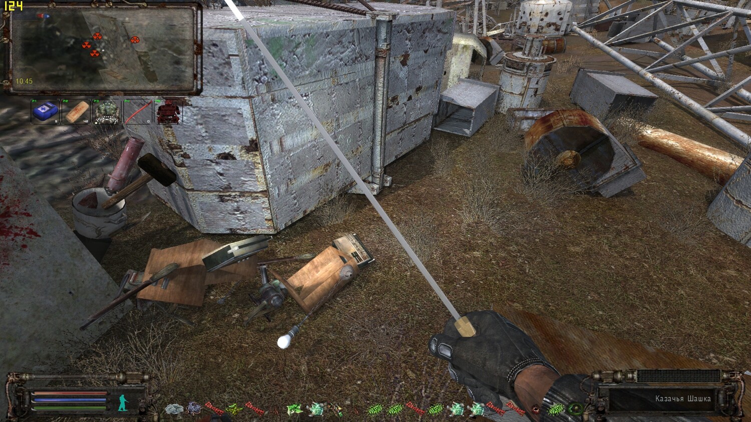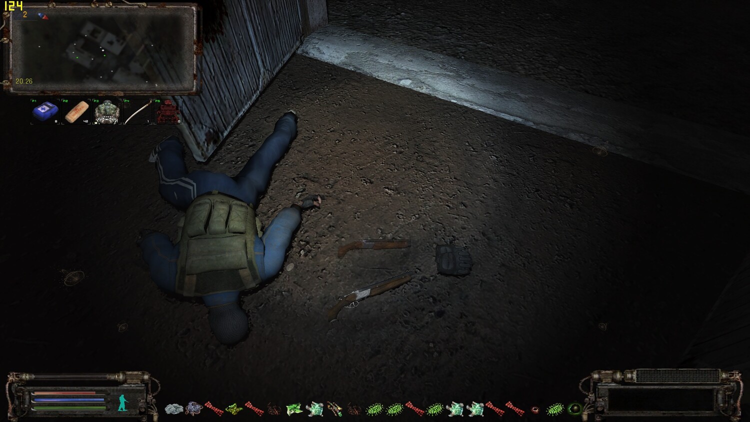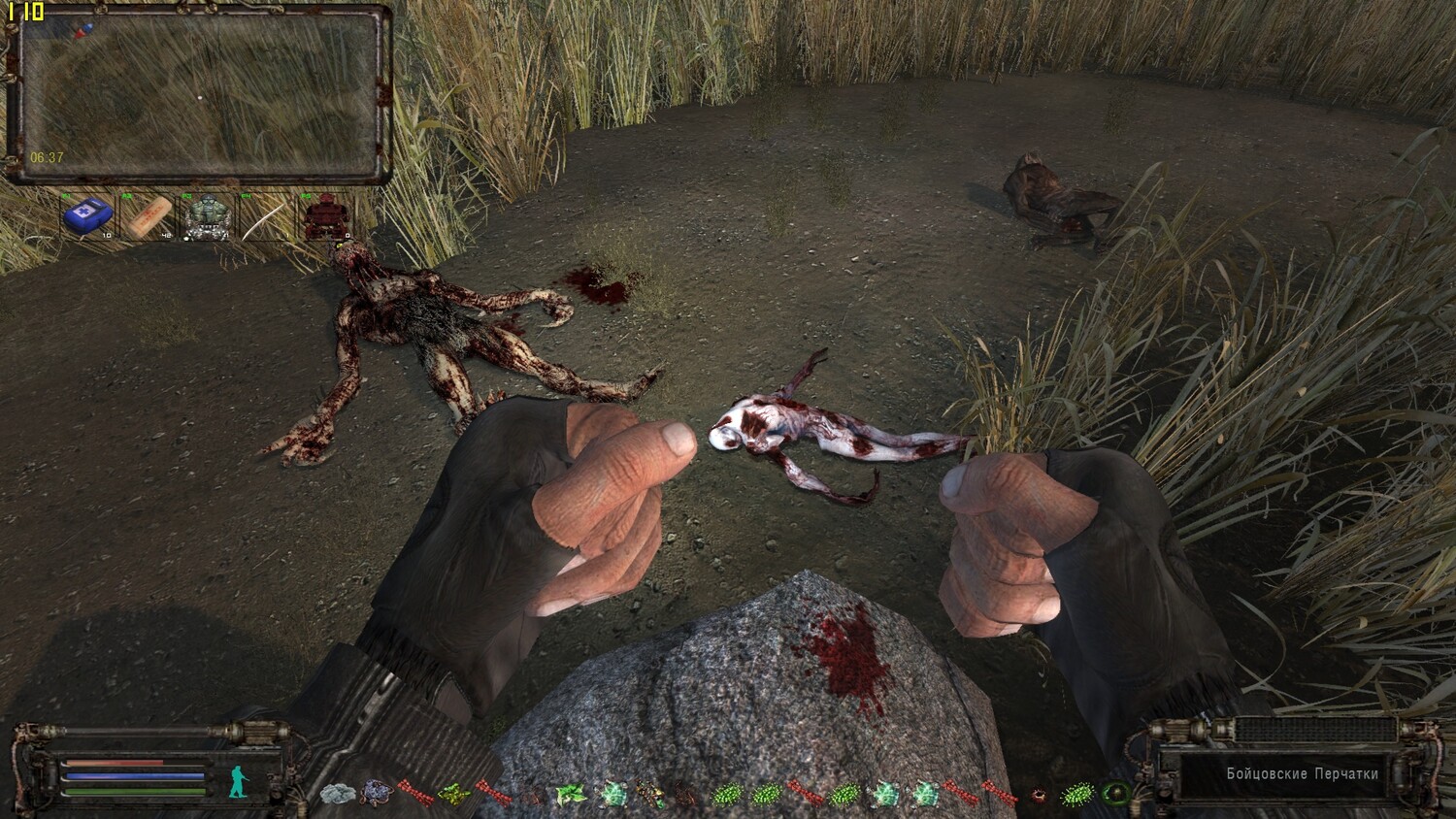 Всем привет! Сейчас закусился с бандосом на АТП Кордона, думал прибьет, три раза перчатки сбивал у Меченого и из обреза по морде, а потом стрелял, от смеха ничего не мог придумать, как повторно их одевать, хорошо сталкер помог, пристрелил его, а тоб Меченый бесславно погиб, немного подлечился когда скрин делал, а то в глазах плыло от приклада обреза. Первый раз такое, ну и насмеялся.