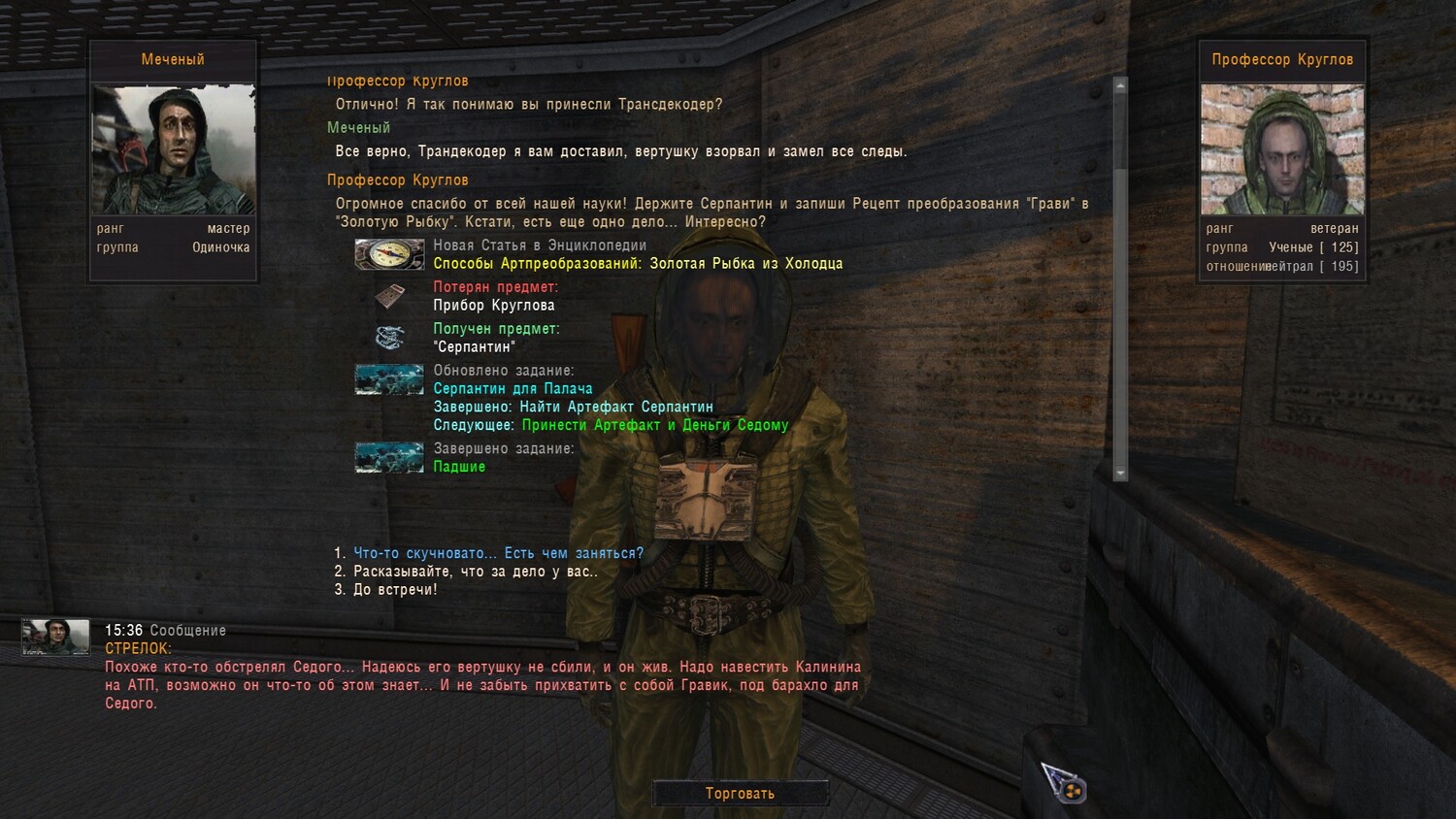 ПЕРВОЕ: Требуется читать все диалоги, задания и информацию в ПДА, а также приходящие красные сообщения и описание всех предметов получаемых в игре. Игрок всю нужную информацию для прохождения получает из игры, а не из Гайдов.
