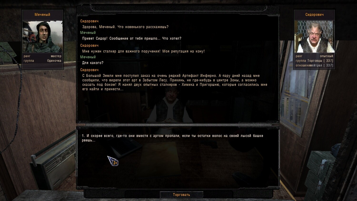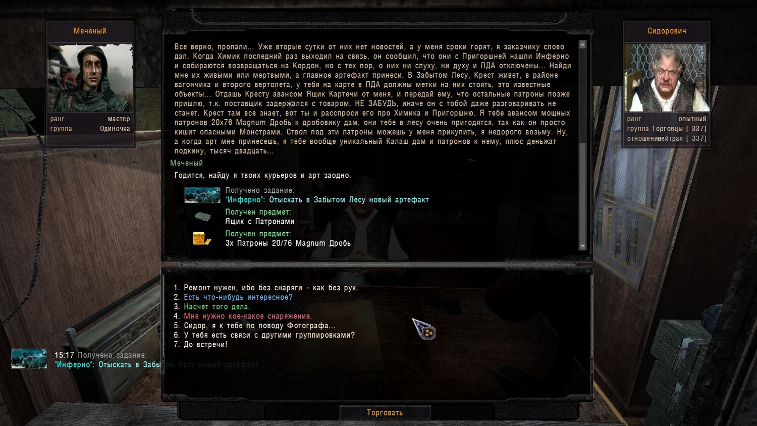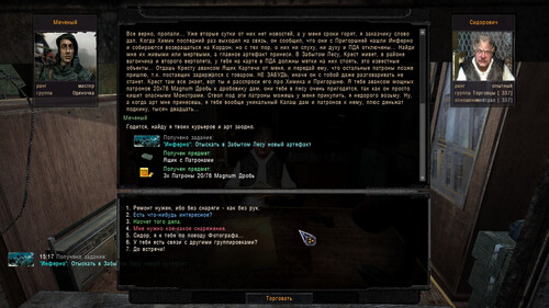 Тебе Сидор дает ящик с патронами, который нужно отдать Кресту. И естественно, выполнить вышеизложенные условия из Списка изменений, которые тебе указал Сергей.