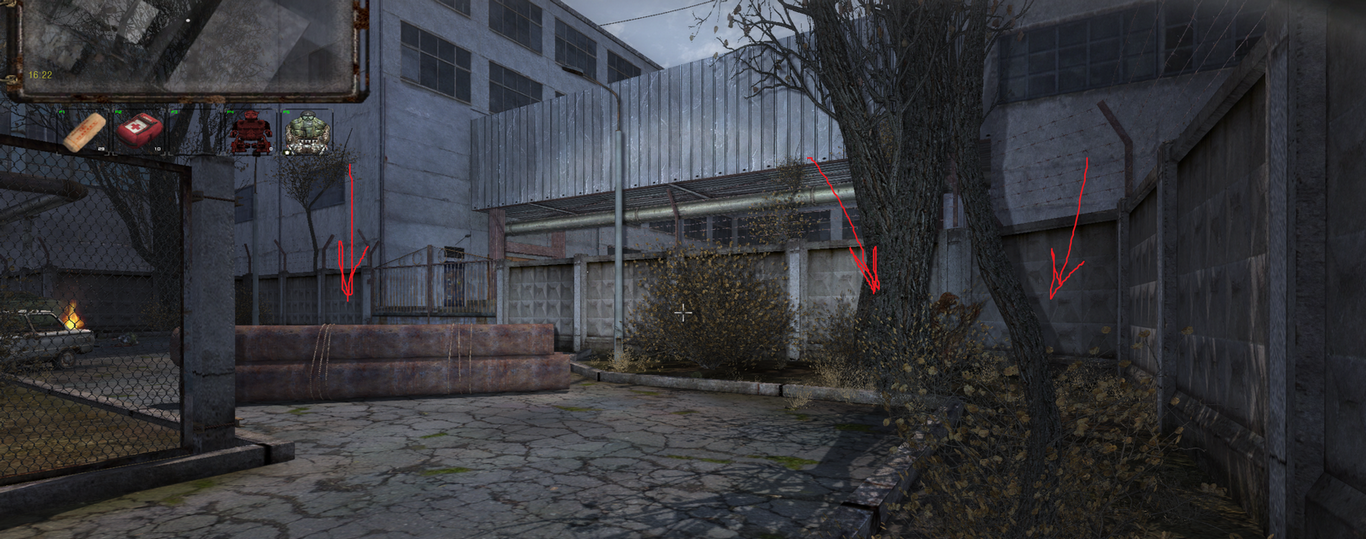 Если подойти к двум плитам забора, указанным на скрине справа,