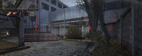 то невидимый телепорт перемещает за забор и сетку, указанным стрелкой слева.